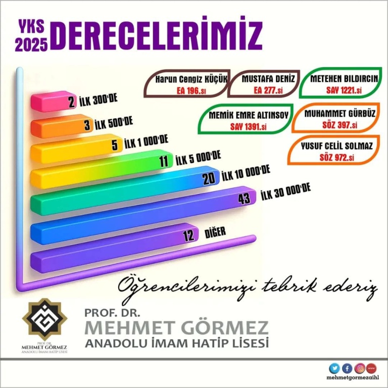 Bu güzel gençlerimizi , ailelerini ve emeği geçen öğretmenlerimizi tebrik ediyoruz. Yolunuz, bahtınız açık olsun gençler.